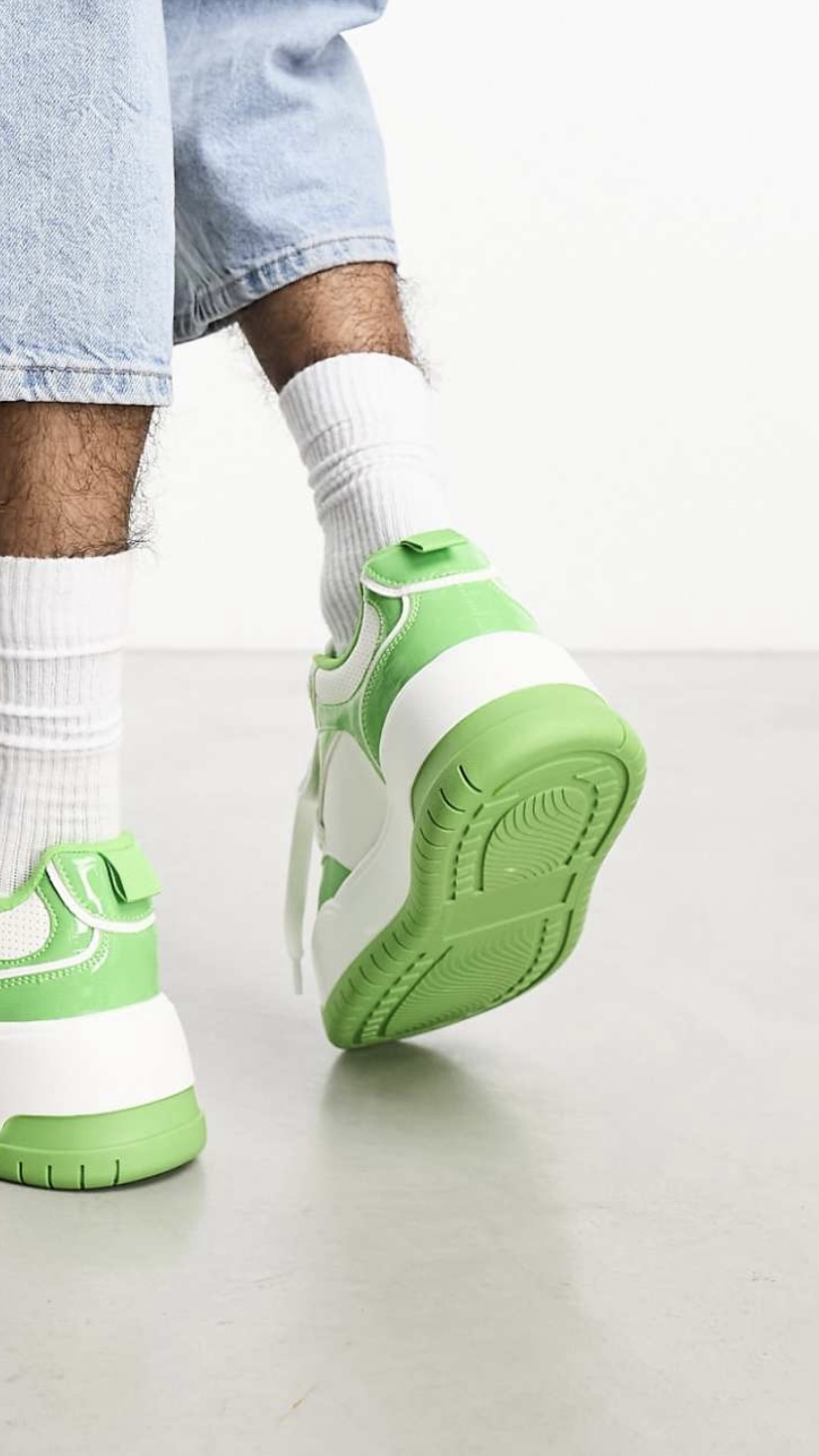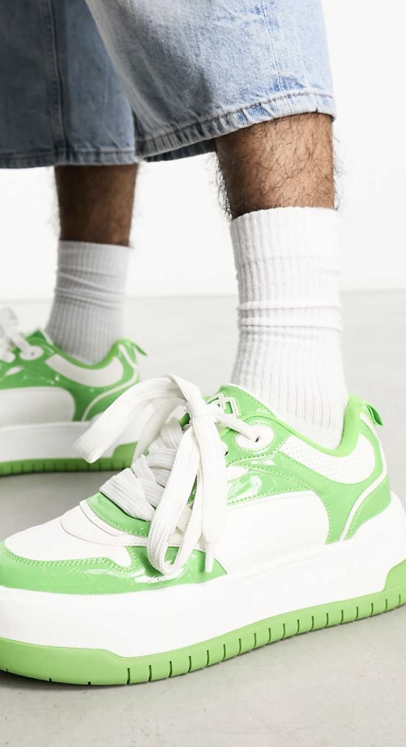 Step into bold style with these statement chunky trainers, featuring glossy green patent panels for a fresh pop of color. Designed with a thick sole and layered textures, they blend streetwear edge with everyday comfort—perfect for turning heads on the go.